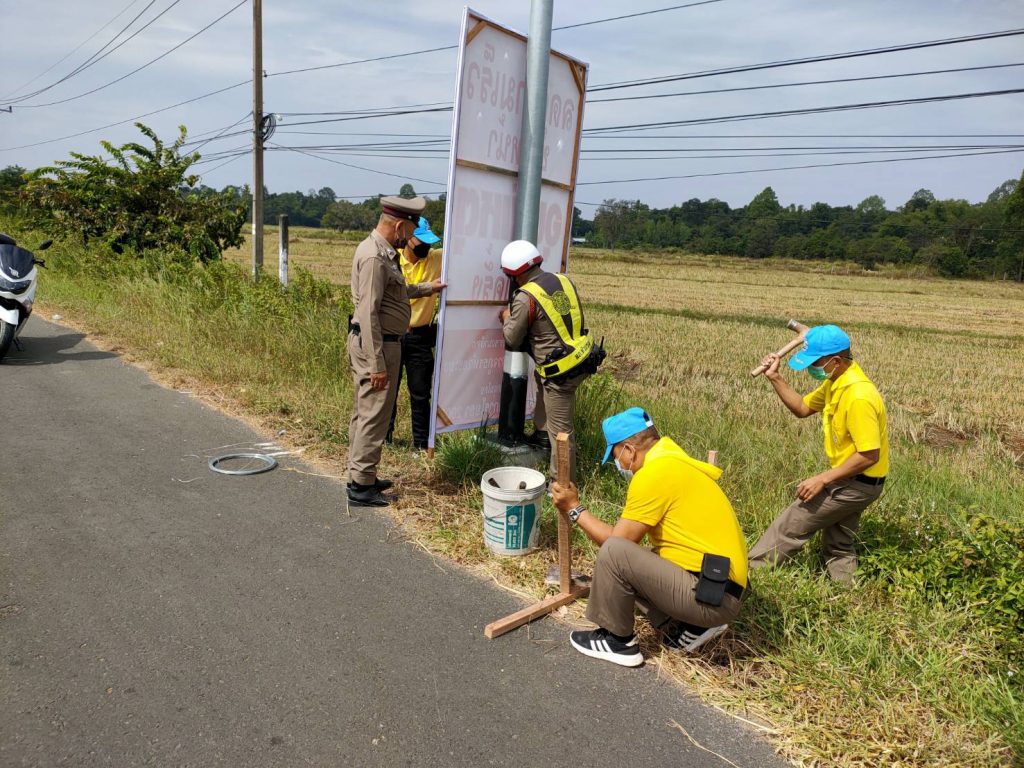 วันที่ 26 ธันวาคม 2567 เวลา 10.00 น. พ.ต.ท.วุฒิชัย สิงห์คง รอง ผกก.(สอบสวน)ฯรรท.ผกก.สภ.ห้วยขะยุง มอบหมายให้ ร.ต.อ.ทิวากร ยุบล รอง สว.ธร.สภ.ห้วยขะยุง นำข้าราชการตำรวจสายงานอำนวยการและจราจร ร่วมทำกิจกรรมจิตอาสาพัฒนา ติดตั้งป้ายสื่อประชาสัมพันธ์รณรงค์ขับขี่ปลอดภัย เมืองไทยไร้อุบัติเหตุ ตามเส้นทางถนนทางหลวงหมายเลข 226 (สายศรีสะเกษ-วารินชำราบ) ในเขตพื้นที่รับผิดชอบ เพื่อให้ประชาชนผู้ขับขี่ได้ใช้ความระมัดระวังในการใช้รถใช้ถนนในช่วงวันหยุดยาวของเทศกาลปีใหม่ 2568