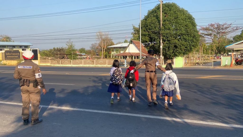 #จราจร สภ.ห้วยขะยุง อำนวยความสะดวกแก่นักเรียนและผู้ปกครองข้ามถนนหน้า ร.ร.