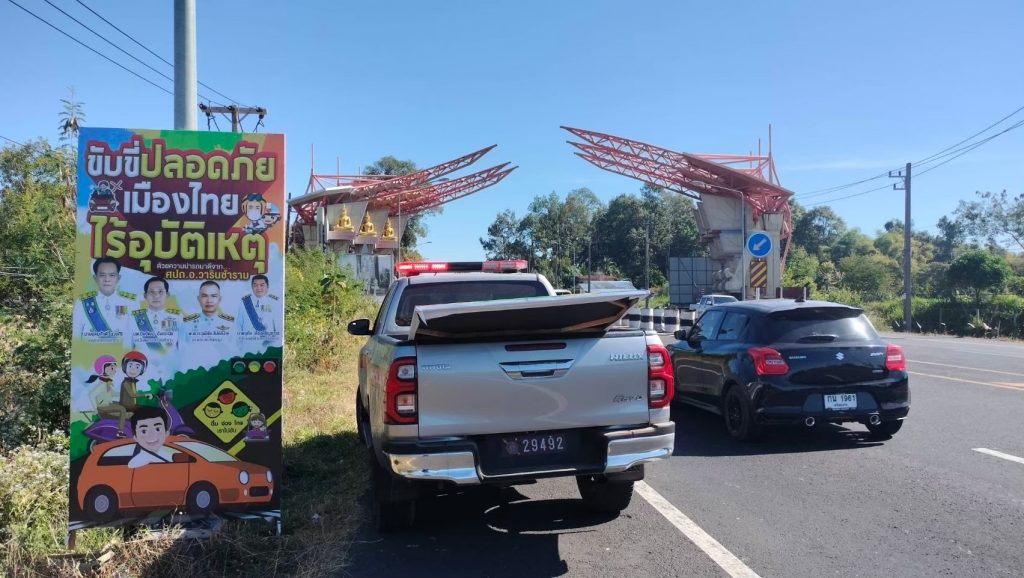 #งานอำนวยการร่วมกิจกรรมจิตอาสาพัฒนาติดตั้งป้ายประชาสัมพันธ์ขับขี่ปลอดภัยช่วงเทศกาลปีใหม่ 2568 วันที่ 26 ธันวาคม 2567 เวลา 10.00 น. พ.ต.ท.วุฒิชัย สิงห์คง รอง ผกก.(สอบสวน)ฯรรท.ผกก.สภ.ห้วยขะยุง มอบหมายให้ ร.ต.อ.ทิวากร ยุบล รอง สว.ธร.สภ.ห้วยขะยุง นำข้าราชการตำรวจสายงานอำนวยการและจราจร ร่วมทำกิจกรรมจิตอาสาพัฒนา ติดตั้งป้ายสื่อประชาสัมพันธ์รณรงค์ขับขี่ปลอดภัย เมืองไทยไร้อุบัติเหตุ ตามเส้นทางถนนทางหลวงหมายเลข 226 (สายศรีสะเกษ-วารินชำราบ) ในเขตพื้นที่รับผิดชอบ เพื่อให้ประชาชนผู้ขับขี่ได้ใช้ความระมัดระวังในการใช้รถใช้ถนนในช่วงวันหยุดยาวของเทศกาลปีใหม่ 2568