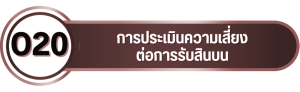 1) วิเคราะห์ความเสี่ยงต่อการรับสินบน ตามแนวทางการดำเนินงานการประเมินคุณธรรมและความโปร่งใสฯ (O20) แยกแต่ละสายงาน ทุกสายงานต้องสามารถระบุกระบวนการดำเนินงานที่มีความเสี่ยง