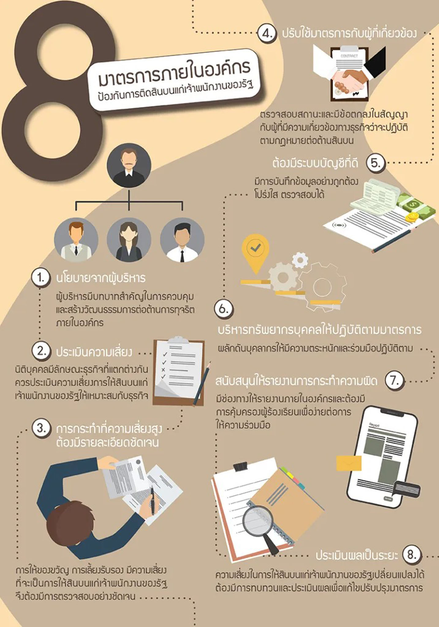 3) กำหนดกิจกรรมต่างๆ เพื่อส่งเสริมให้เกิดคุณธรรม มีความโปร่งใส และป้องกันการทุจริต การรับสินบนในทุกสายงาน