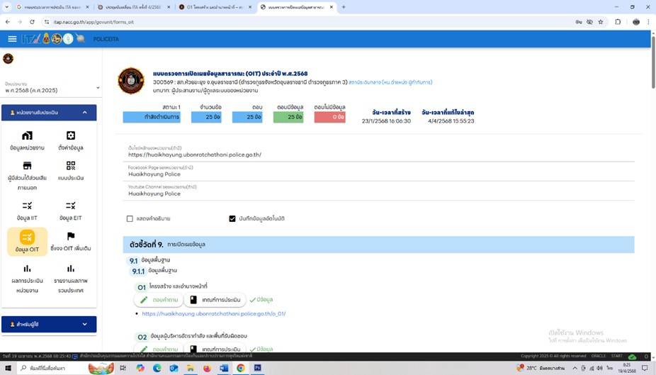 วันที่ 15 มีนาคม 2568 เวลา 13.00 น. พ.ต.อ.ศุกรีย์ เลิศวงหัด ผกก.สภ.ห้วยขะยุง มอบหมายให้ พ.ต.ท.หญิง ภัชธณิชา มาลีหวล  สว.อก.สภ.ห้วยขะยุง / หัวหน้าคณะทำงาน ประชุมคณะทำงานขับเคลื่อนฯ เพื่อมอบหมายหน้าที่ความรับผิดชอบและให้คำแนะนำในการจัดทำข้อมูล  IIT  EIT และ OIT แก่คณะทำงานเพื่อร่วมกันขับเคลื่อนผลการประเมินให้เป็นไปตามกรอบที่ สำนักงาน ป.ป.ช.กำหนด
